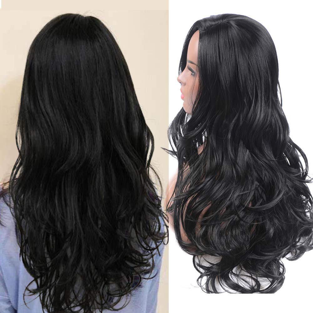 Con raya al medio y falso cuero cabelludo, sin flequillo (no front lace)