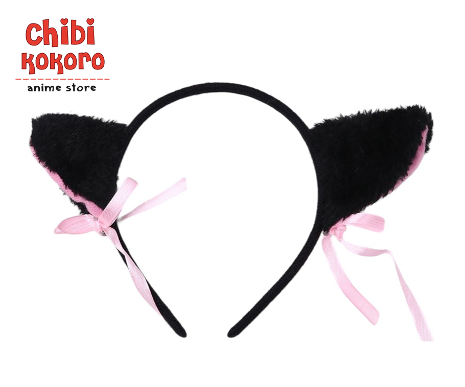 Vincha con orejas de gato de peluche con cintas